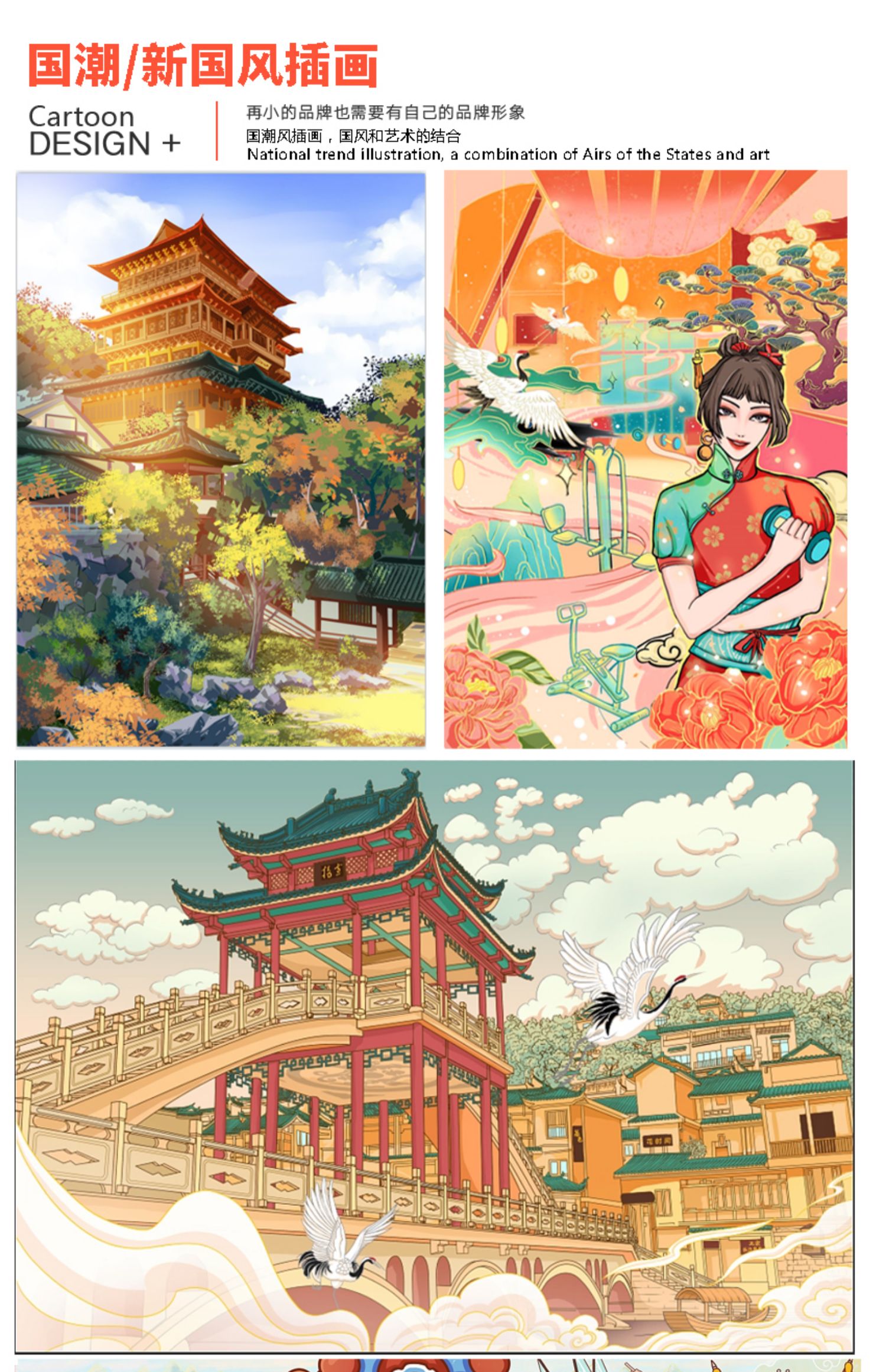 国潮/新国风插画:再小的品牌也需要有自己的品牌形象国潮风插画,国风和艺术的结合。我们的国潮插画将传统元素与现代审美相结合,为您呈现别具一格的视觉体验。